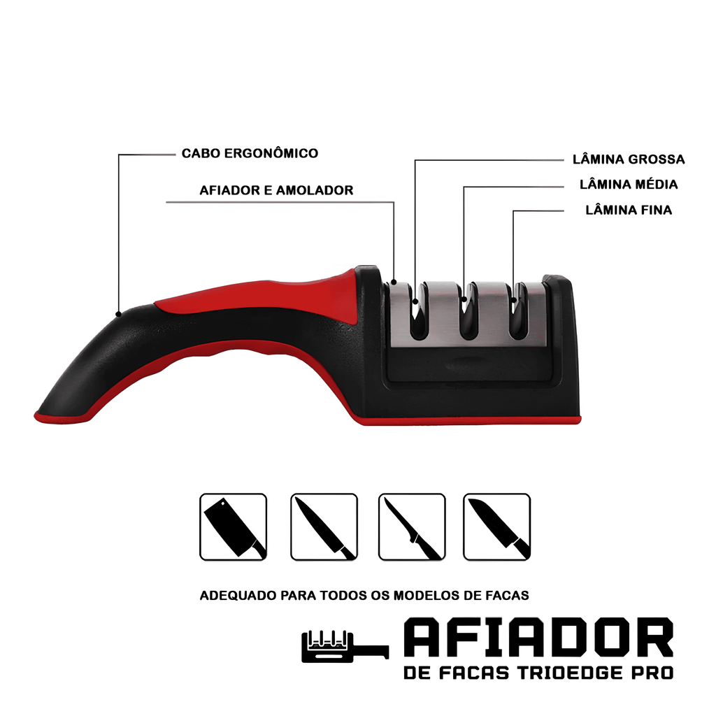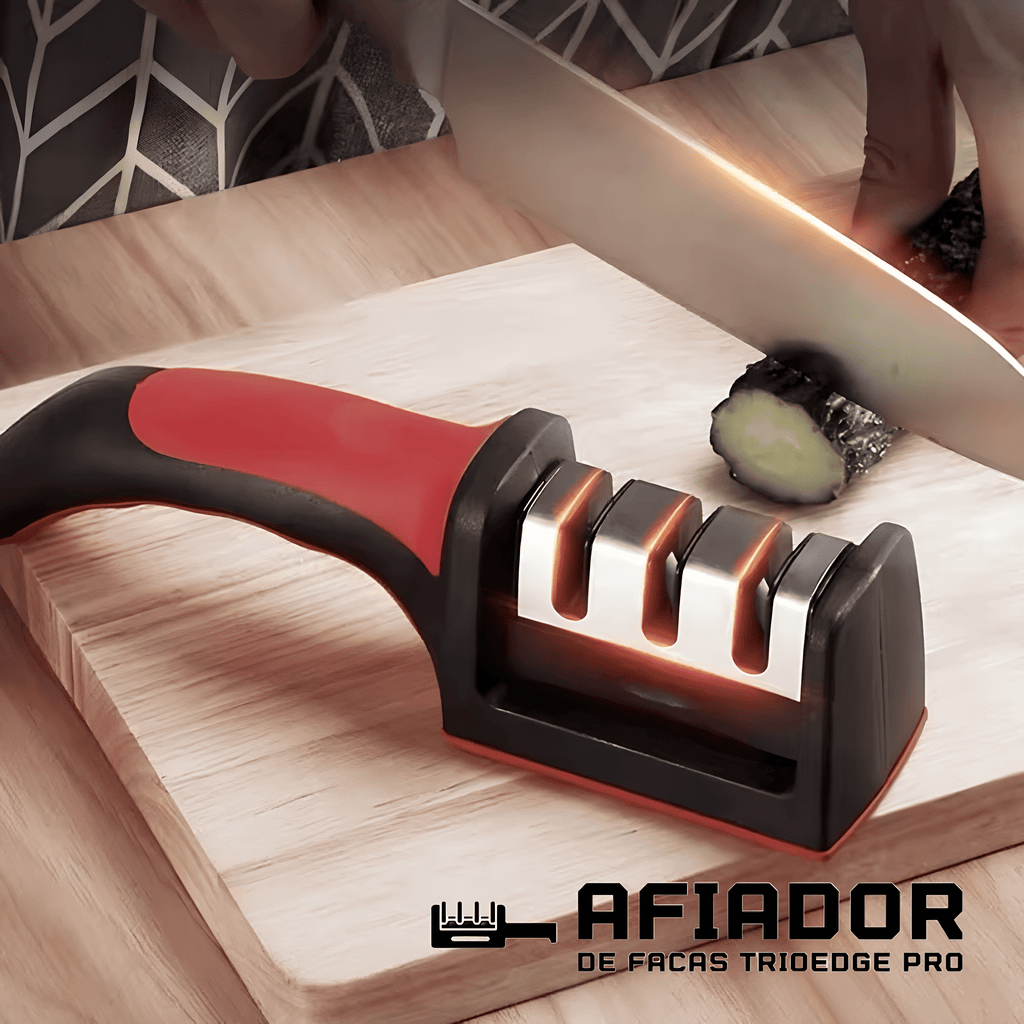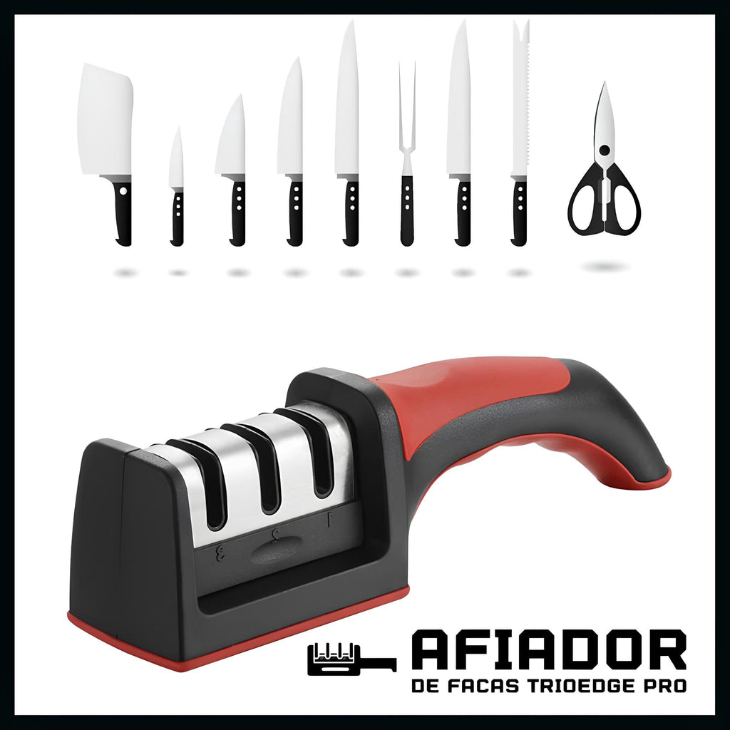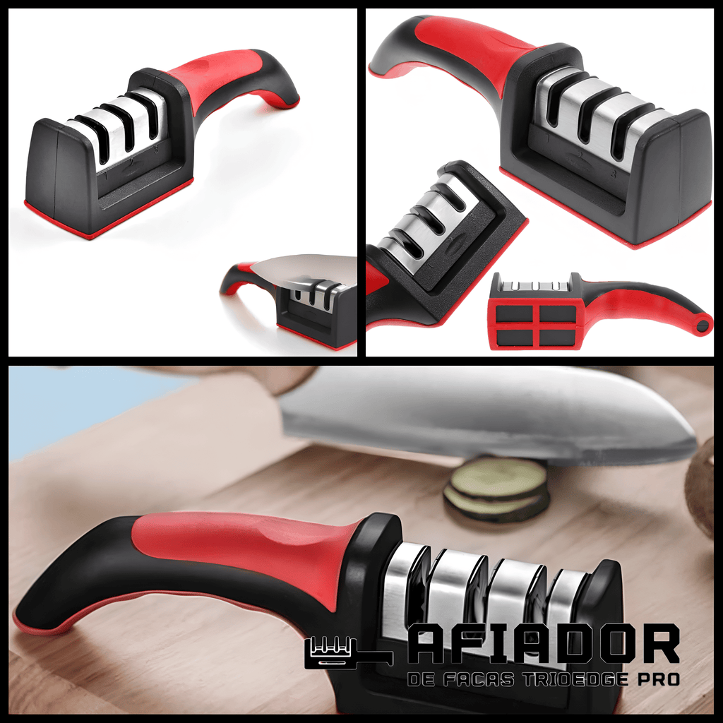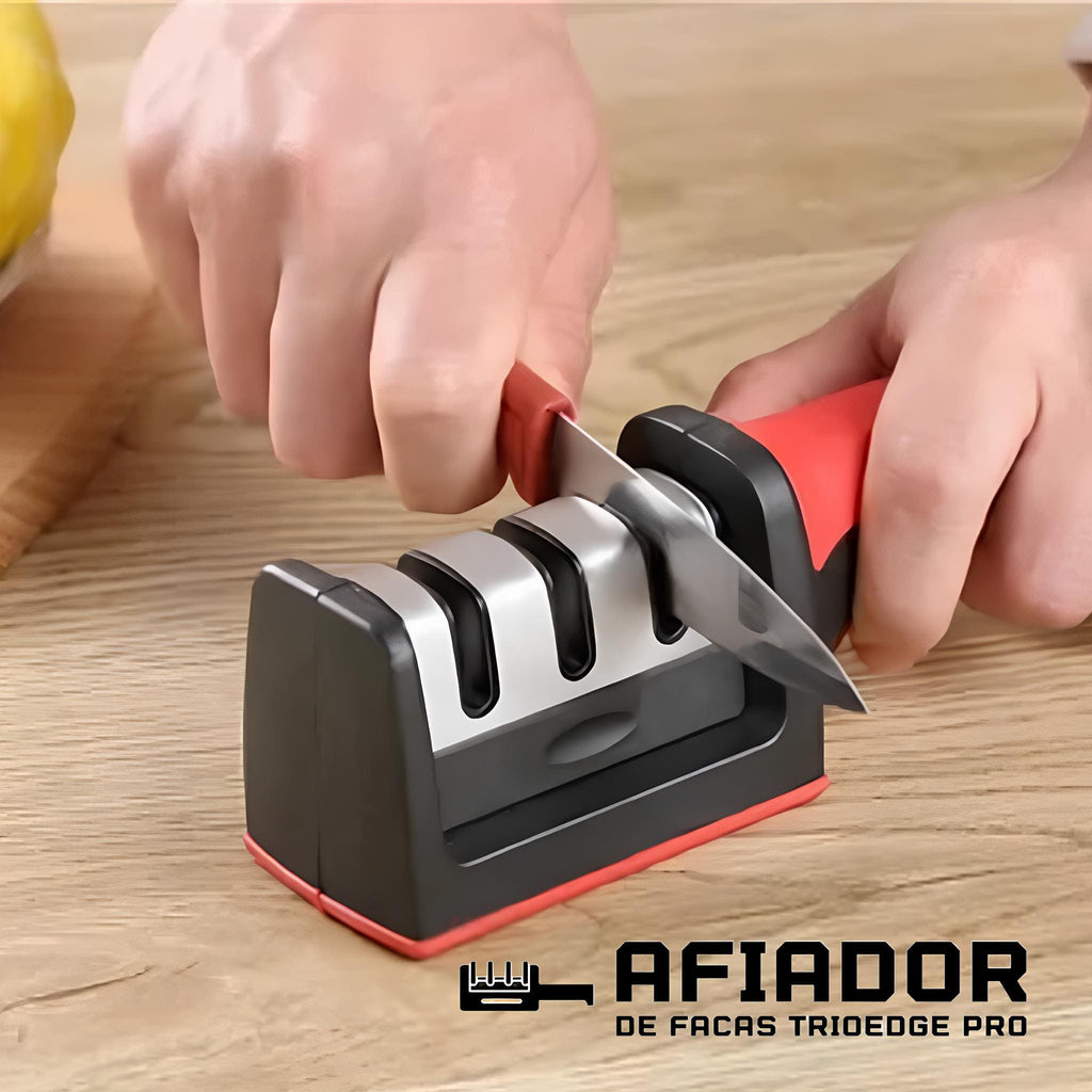 Com o Afiador de Facas TrioEdge Pro, você nunca mais vai perder tempo, dinheiro e paciência com facas que não cortam.